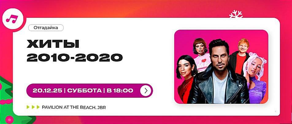 Увлекательная игра, где будем угадывать самые хитовые песни, включая любимые треки Dua Lipa, возможность вспомнить "Despacito-mania" и другие хиты, которые стали настоящими феноменами, атмосфера веселья, общения и отличного настроения с единомышленниками.